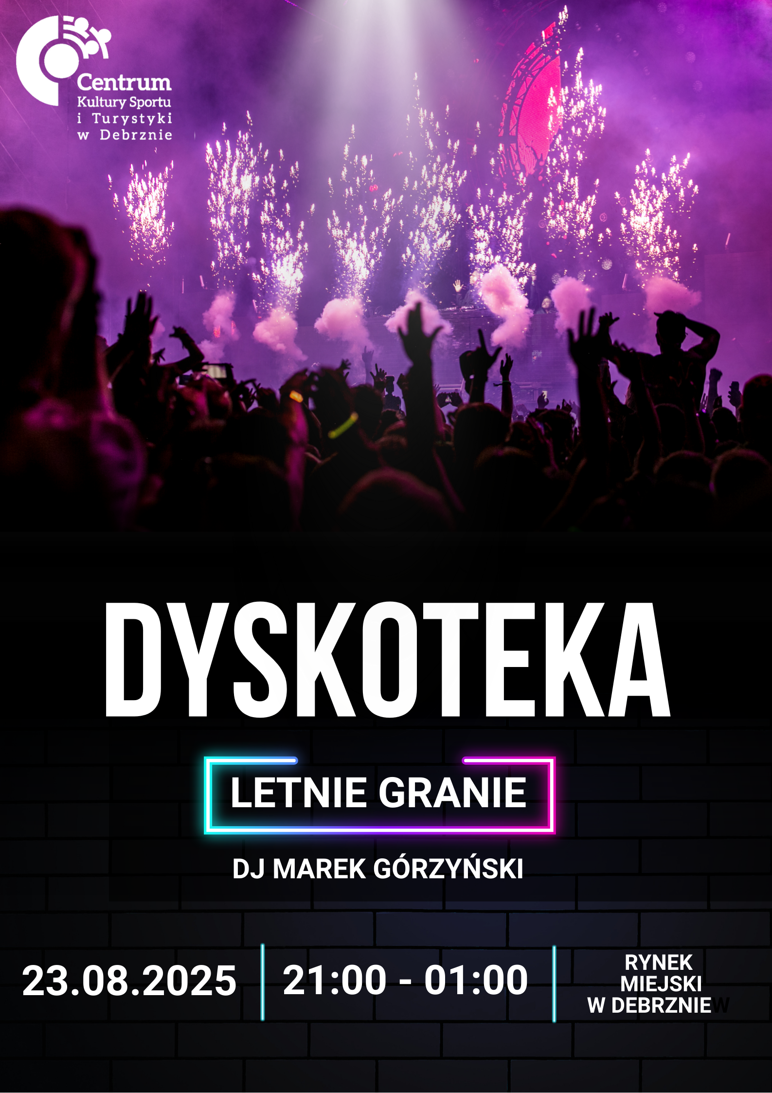 Organizator – Centrum Kultury Sportu i Turystyki w Debrznie zaprasza na noc pełną wakacyjnej muzyki, tańca i dobrej zabawy!