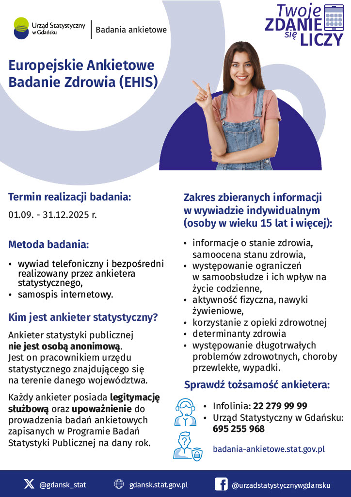 Urząd Statystyczny w Gdańsku prowadzi Europejskie Ankietowe Badanie Zdrowia (EHIS).