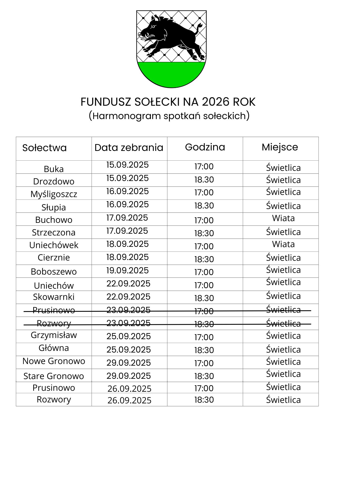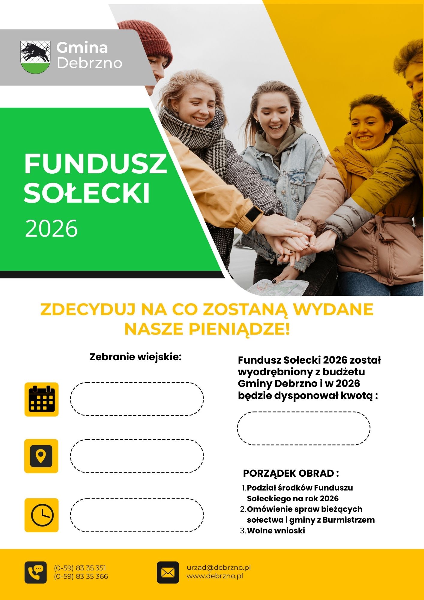Zbliża się czas wspólnego planowania wydatków w ramach Funduszu Sołeckiego na rok 2026. Już od września rozpoczną się zebrania wiejskie, podczas których zdecydujemy, jak najlepiej wykorzystać dostępne środki na rozwój naszych miejscowości.
