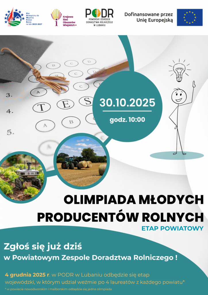 Zapraszamy do udziału w tegorocznej edycji Olimpiady Młodych Producentów Rolnych – wydarzenia, które łączy pasję do rolnictwa z nowoczesnym podejściem do gospodarowania. To doskonała okazja do zdobycia wiedzy, wymiany doświadczeń oraz integracji młodych rolników z całego województwa pomorskiego.