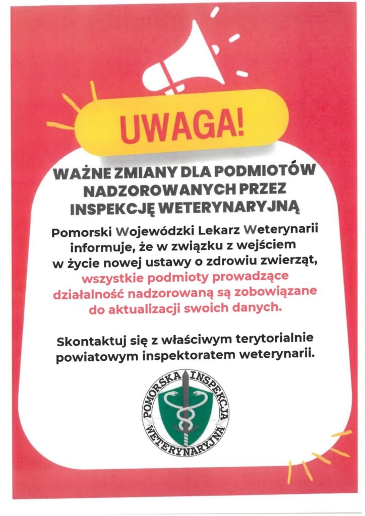 Dnia 16 kwietnia 2026 r. o godz. 12:00 w Sali Posiedzeń Urzędu Miejskiego w Debrznie odbędzie się spotkanie informacyjne z Powiatowym Inspektorem Weterynarii.